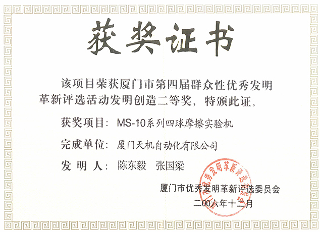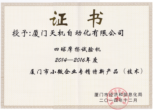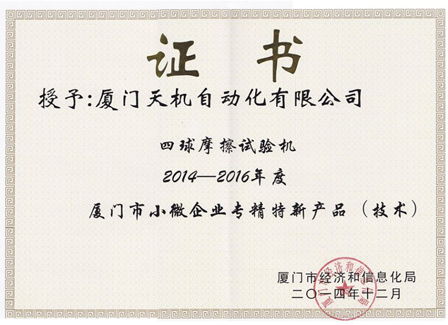 廈門(mén)天機(jī)自動(dòng)化有限公司,成立于2004年,是一家以生產(chǎn)四球機(jī)為主的摩擦磨損測(cè)試儀器的專(zhuān)業(yè)制造商。公司經(jīng)過(guò)多年的努力,研發(fā)出成熟產(chǎn)品有三種類(lèi)型【四球機(jī)】-測(cè)試潤(rùn)滑劑極壓性能(PB、PD、ZMZ)與抗磨性能;【圓錐滾子軸承剪切試驗(yàn)機(jī)KRL】-測(cè)試潤(rùn)滑油的黏度剪切安定性;【鉆孔/攻絲雙功能試驗(yàn)機(jī)】-測(cè)試加工液潤(rùn)滑性。